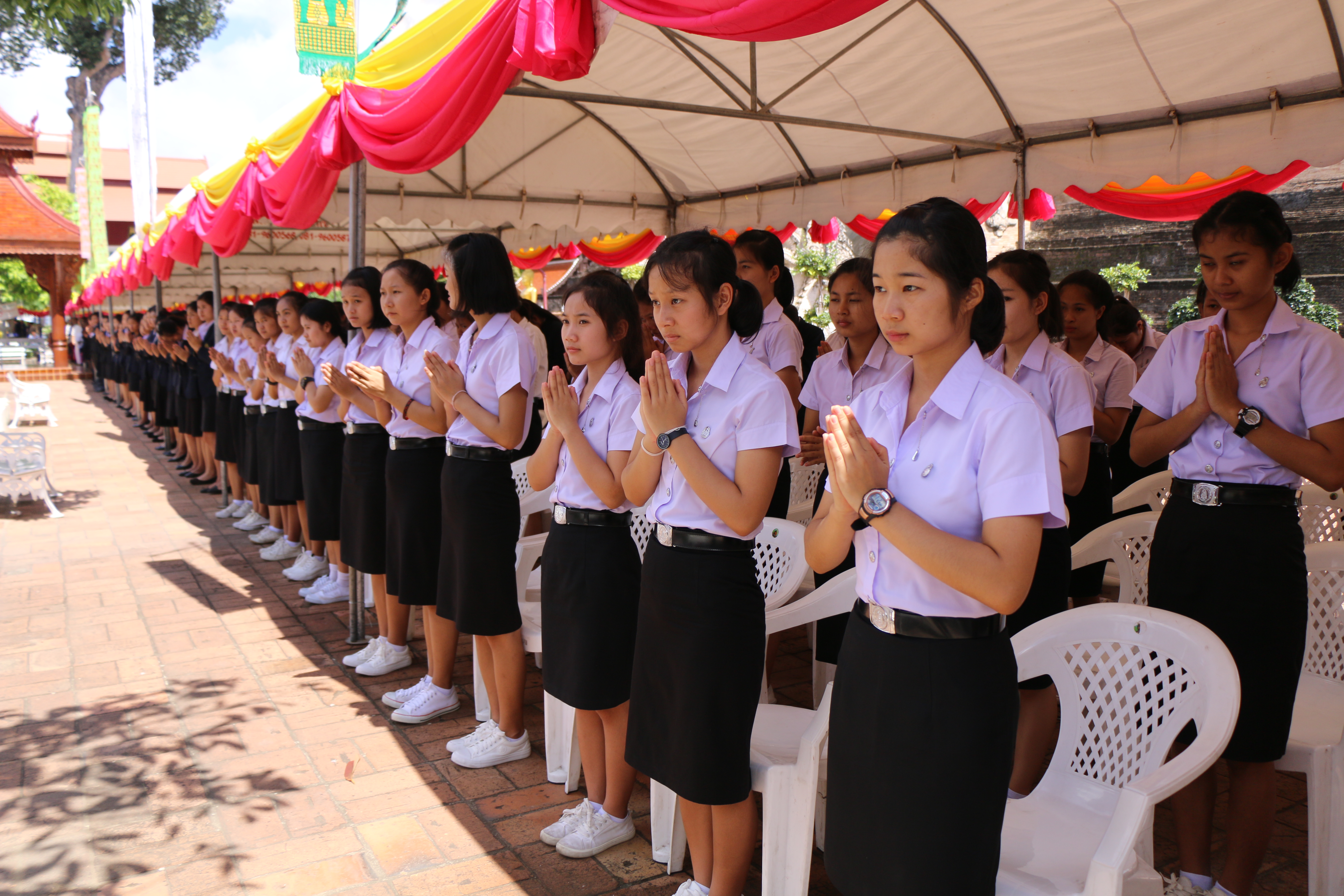 ผู้บริหาร คณาจารย์ เจ้าหน้าที่และนักศึกษา ถวายการต้อนรับ เจ้าประคุณสมเด็จพระวันรัต เจ้าอาวาสวัดบวรนิเวศวิหาร ปฏิบัติหน้าที่แทนสมเด็จพระอริยวงศาคตญาณ สมเด็จพระสังฆราช สกลมหาสังฆปริณายก ทรงเป็นประธานเปิดอาคารปฏิบัติธรรม ณ วัดเจดีย์หลวงวรวิหาร ๑๑ กรกฎาคม ๒๕๖๑