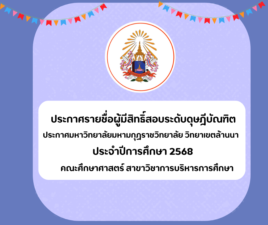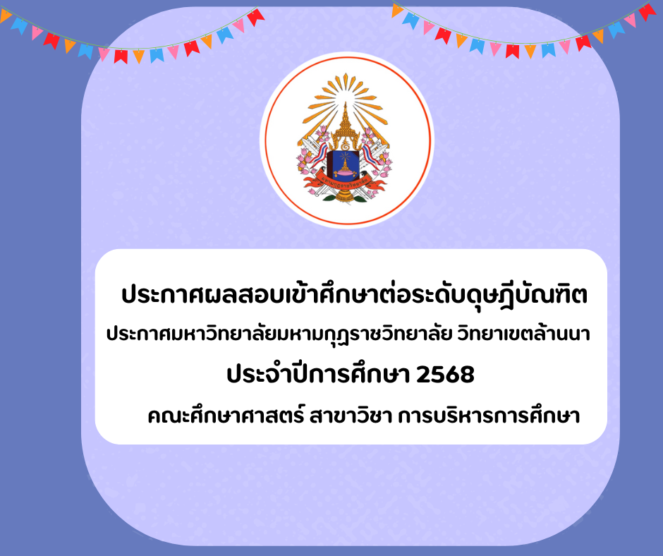 ประกาศผลสอบเข้าศึกษาต่อระดับดุษฎีบัณฑิต ประจำปีการศึกษา 2568สาขาวิชา การบริหารการศึกษา AdminLanna AdminLanna / พฤศจิกายน 3, 2568